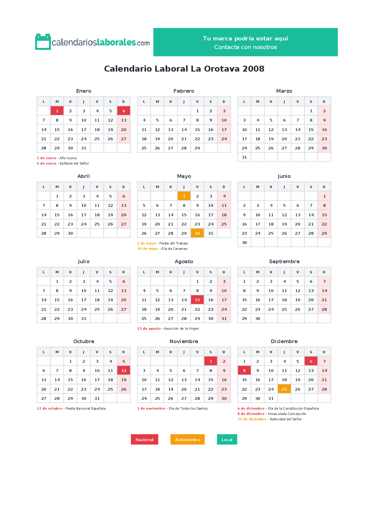 Calendario laboral La Orotava 2008