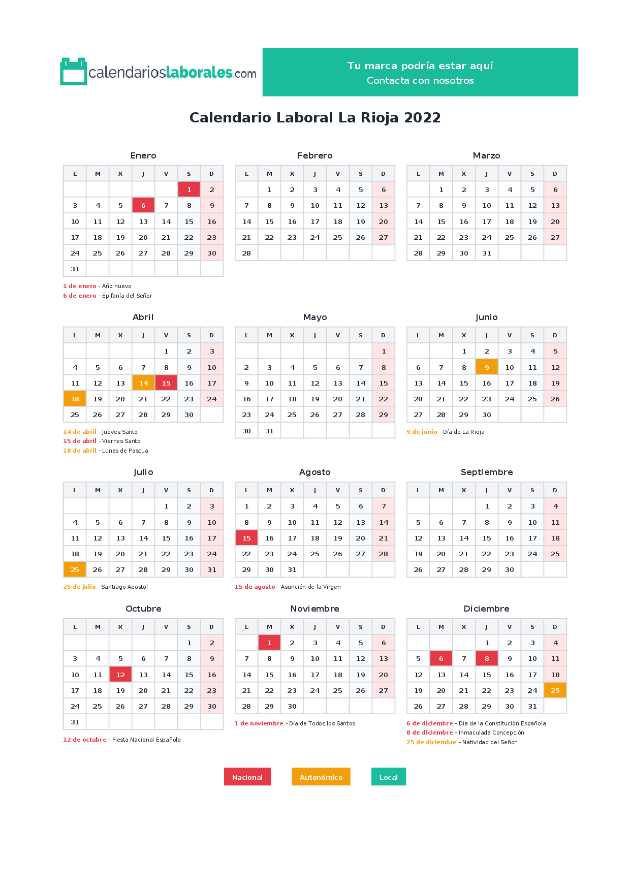Calendario laboral La Rioja 2022