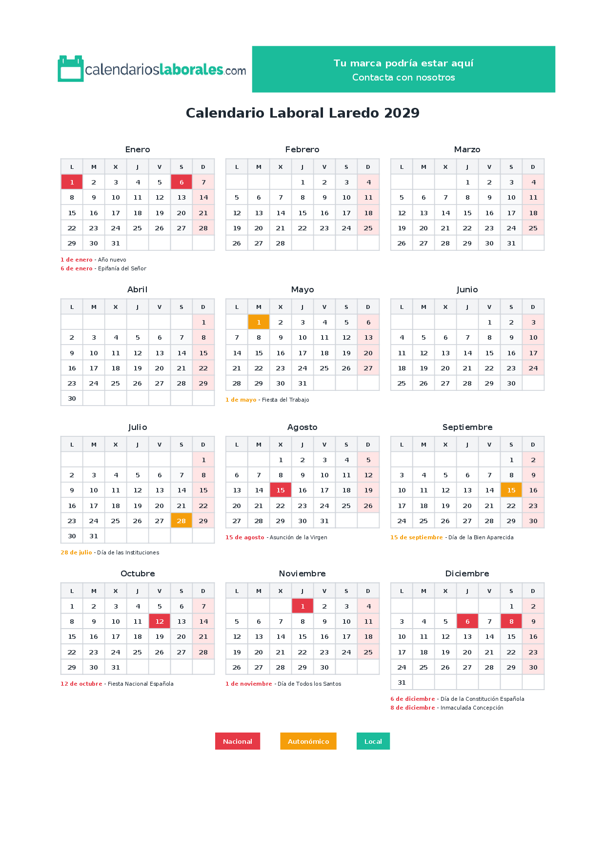 Calendario laboral Laredo 2029