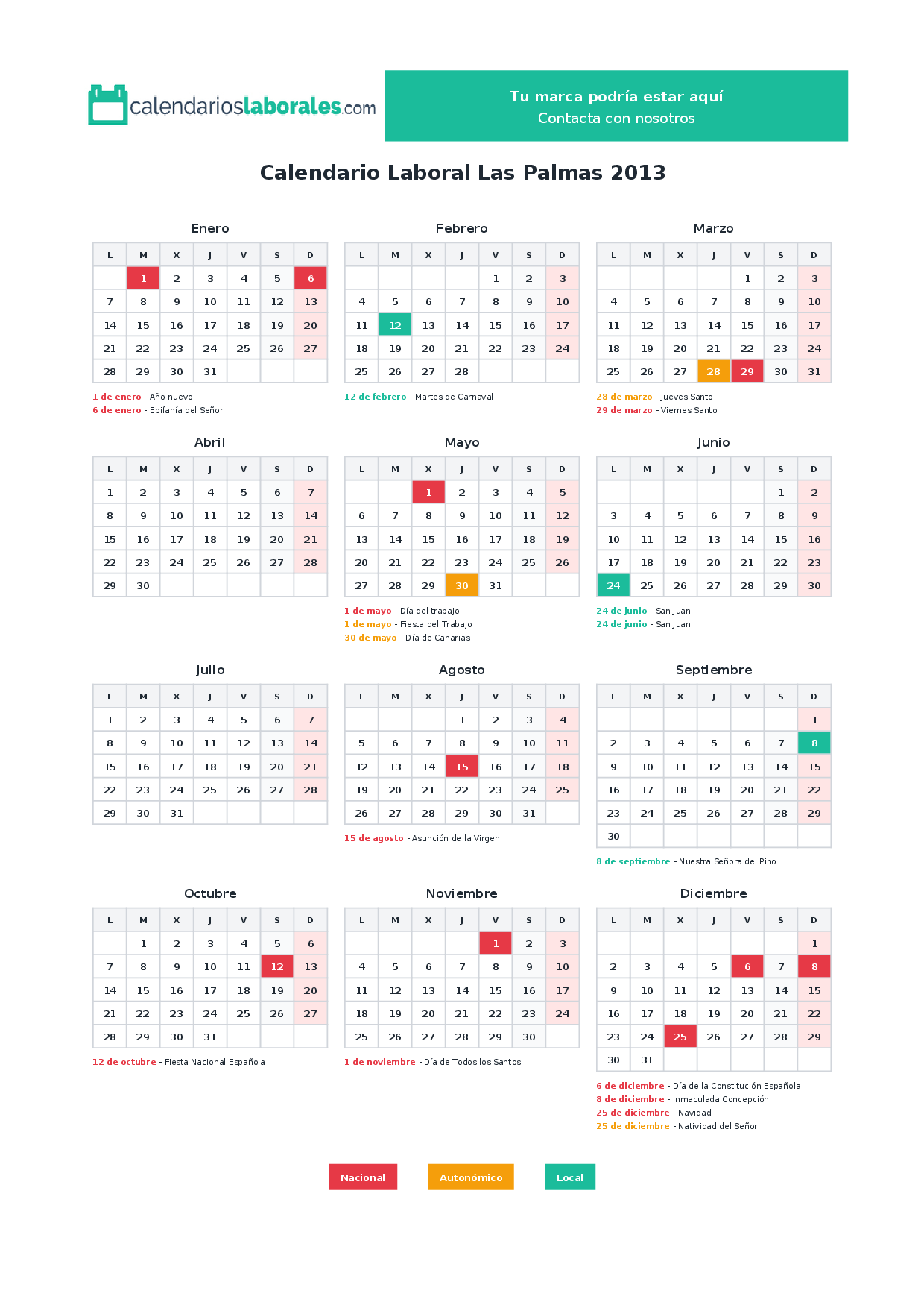 Calendario laboral Las Palmas 2013
