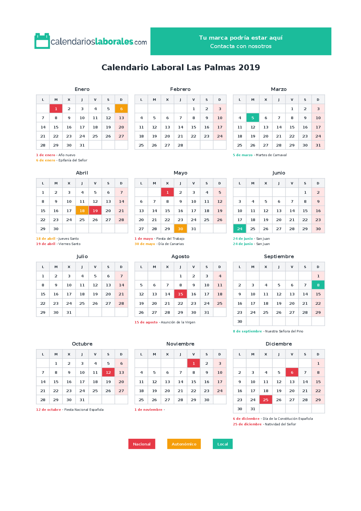 Calendario laboral Las Palmas 2019