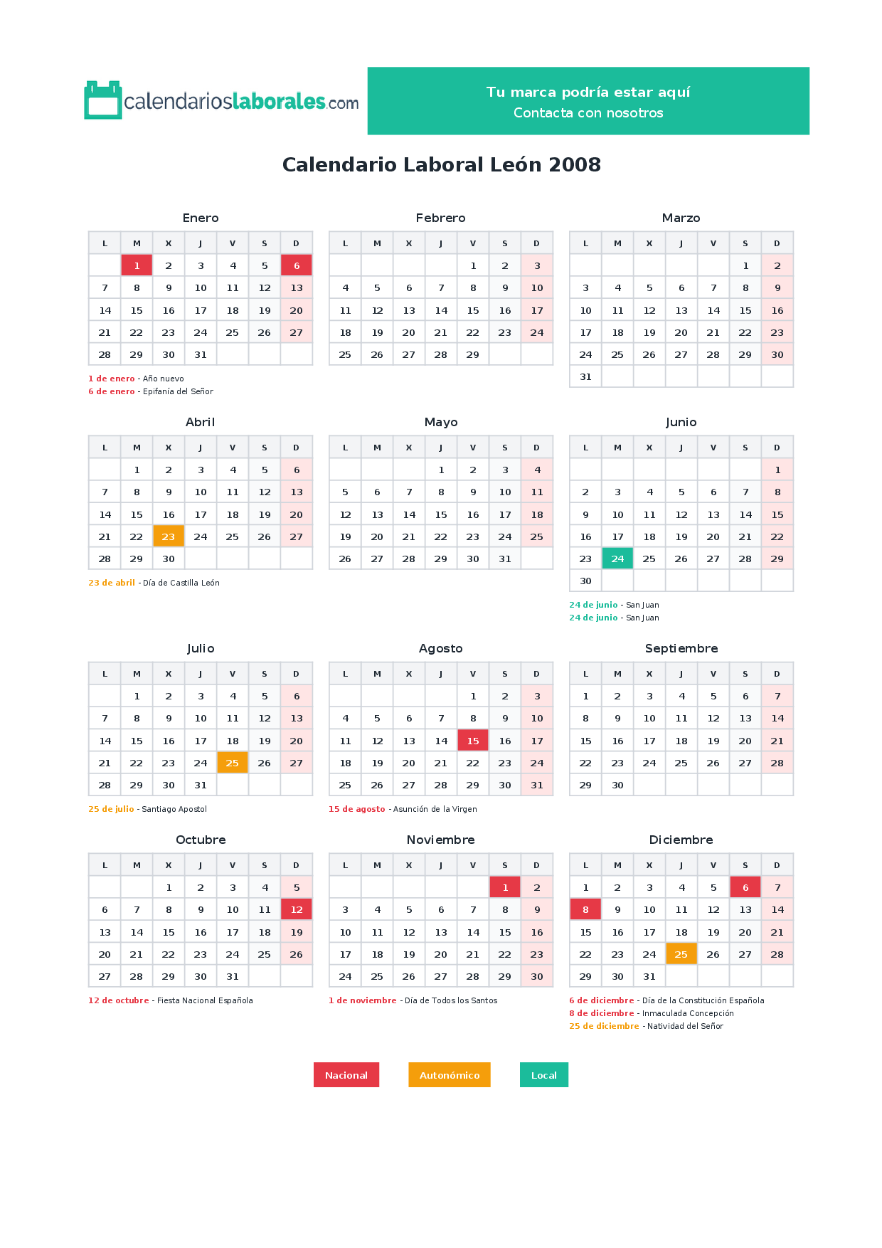 Calendario laboral León 2008