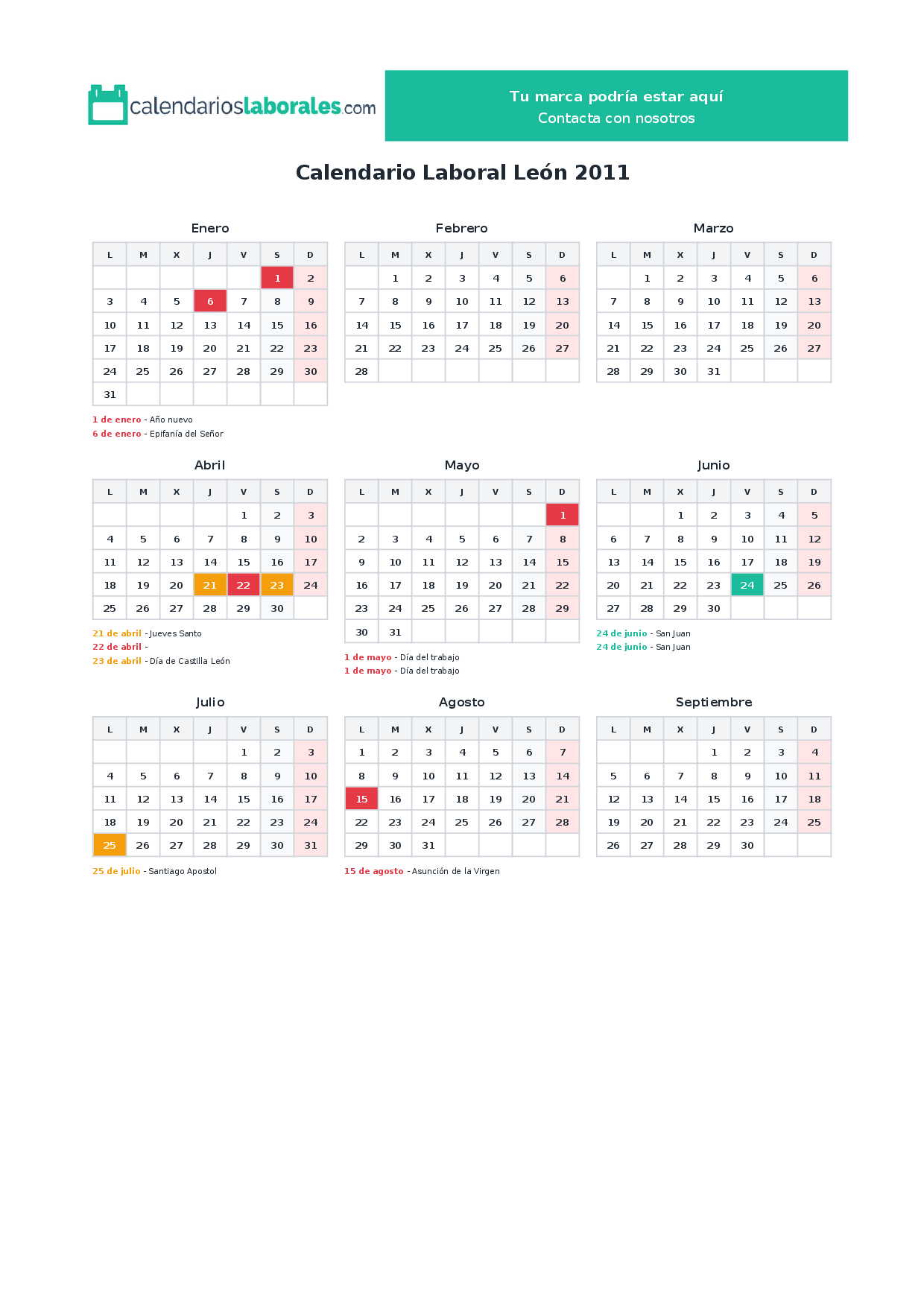 Calendario laboral León 2011