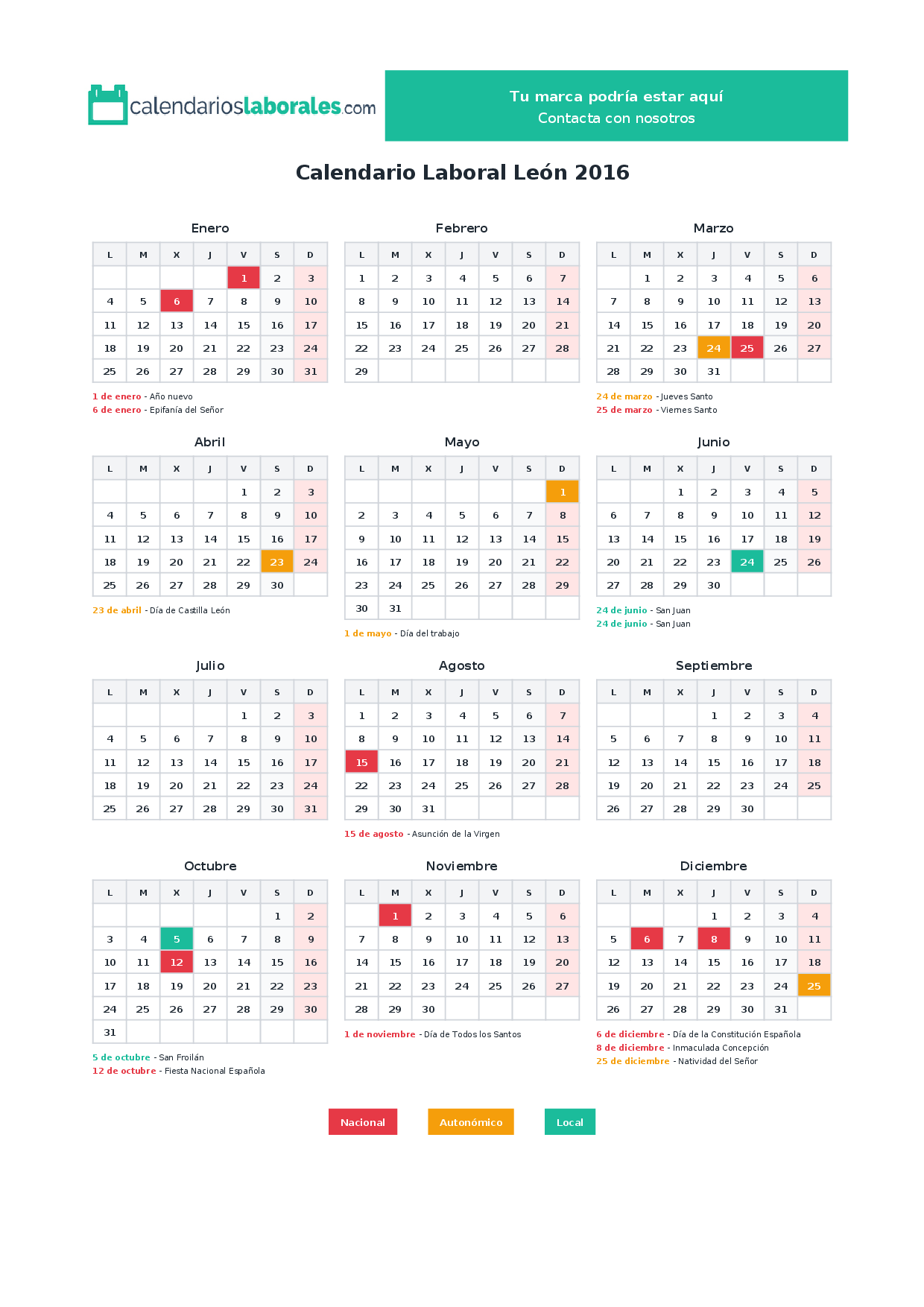 Calendario laboral León 2016