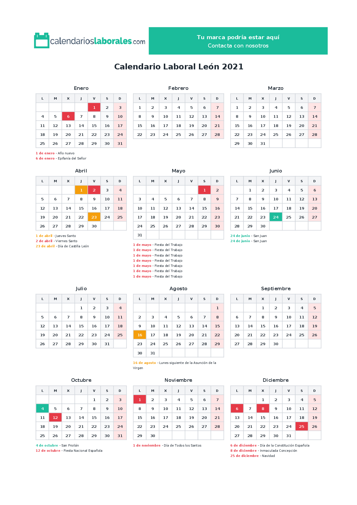 Calendario laboral León 2021
