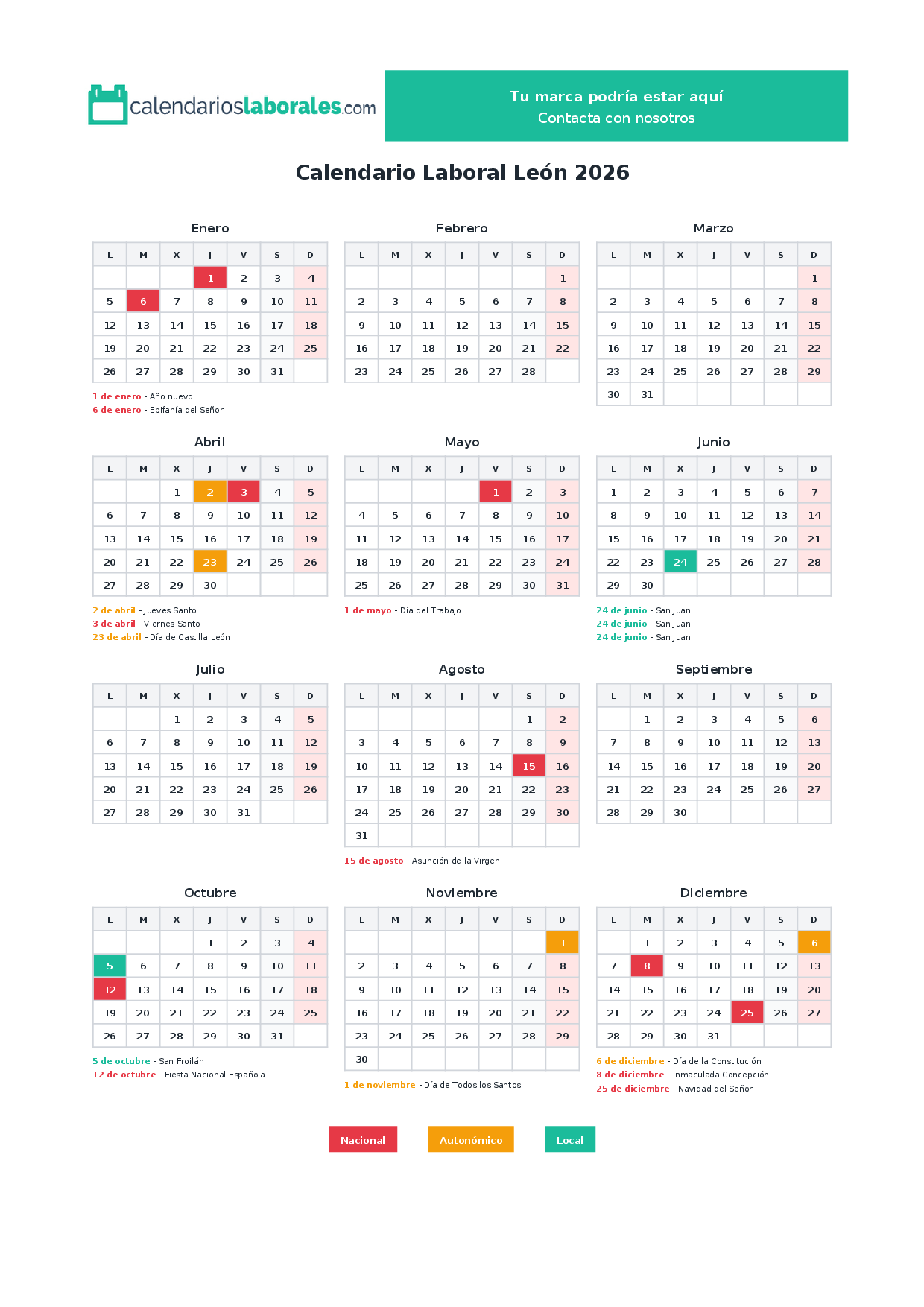 Calendario laboral León 2026