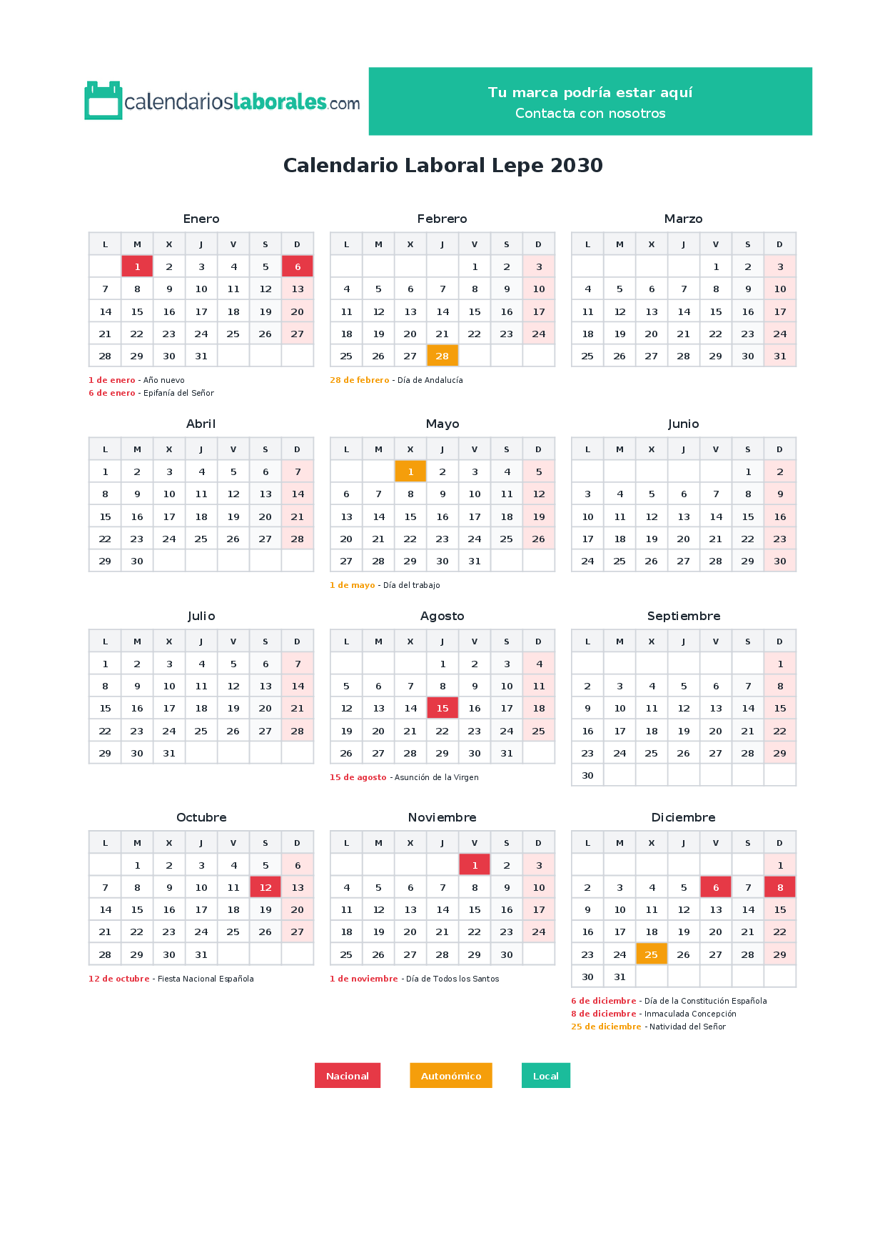 Calendario laboral Lepe 2030