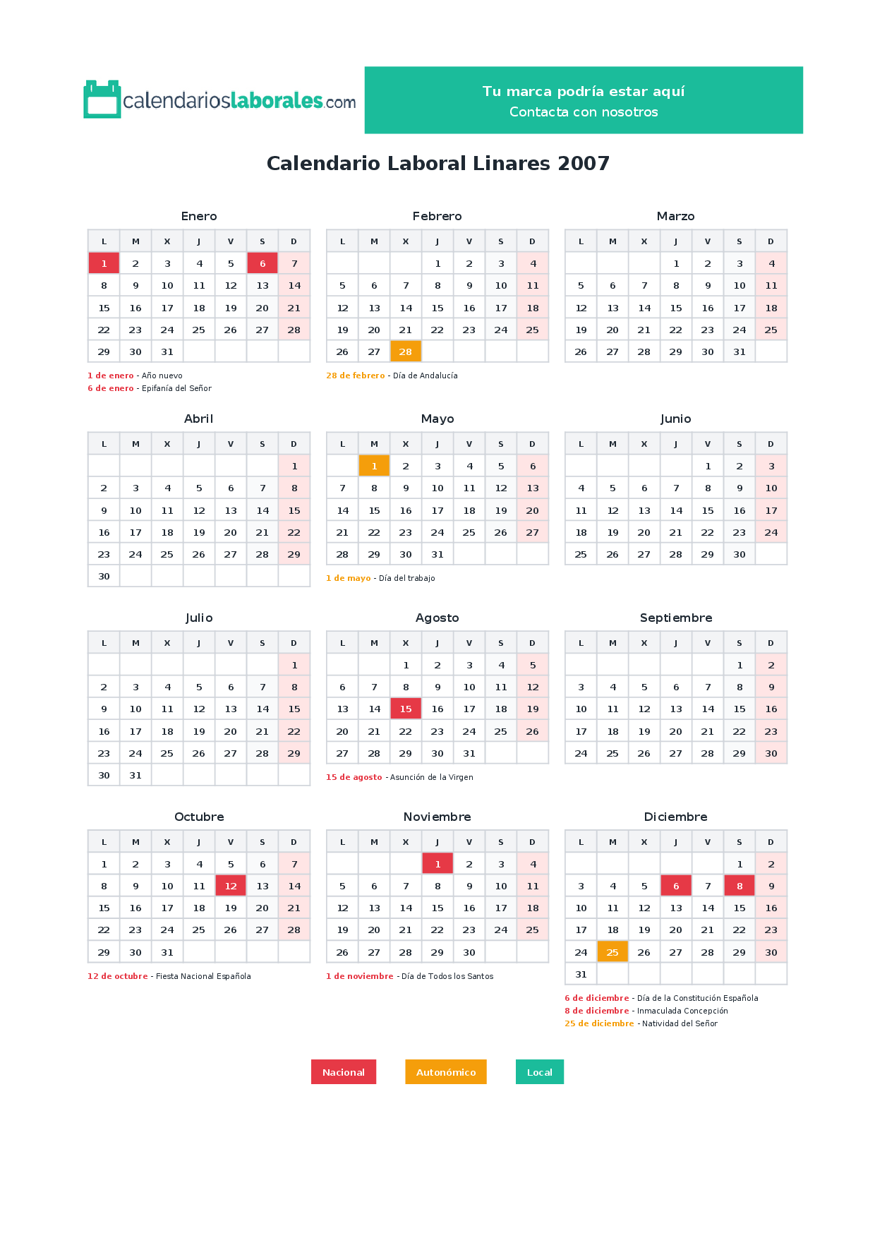 Calendario laboral Linares 2007