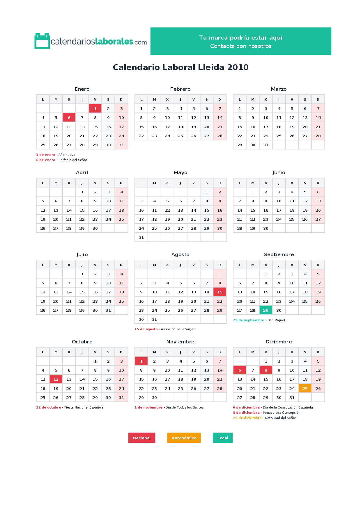 Calendario laboral Lleida 2010