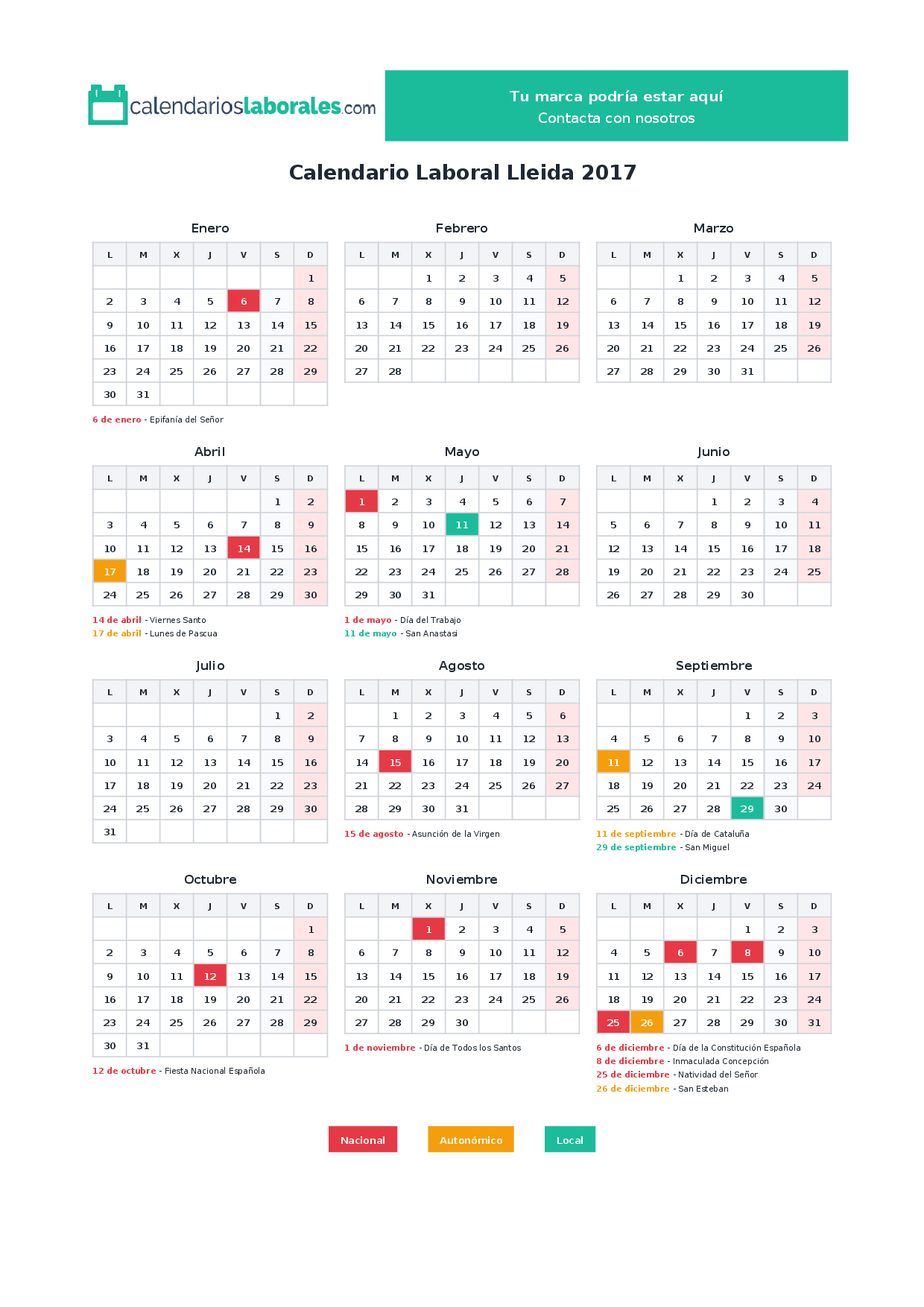 Calendario laboral Lleida 2017