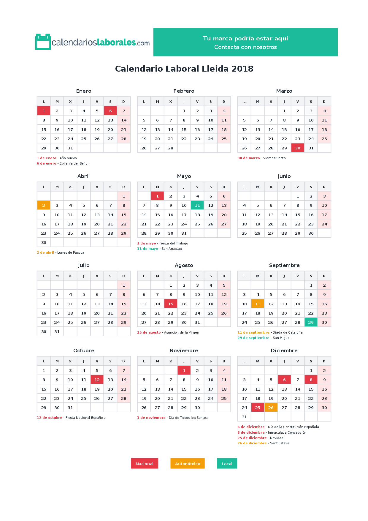 Calendario laboral Lleida 2018