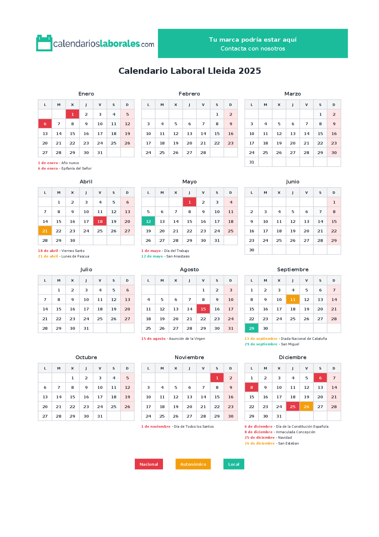 Calendario laboral Lleida 2025