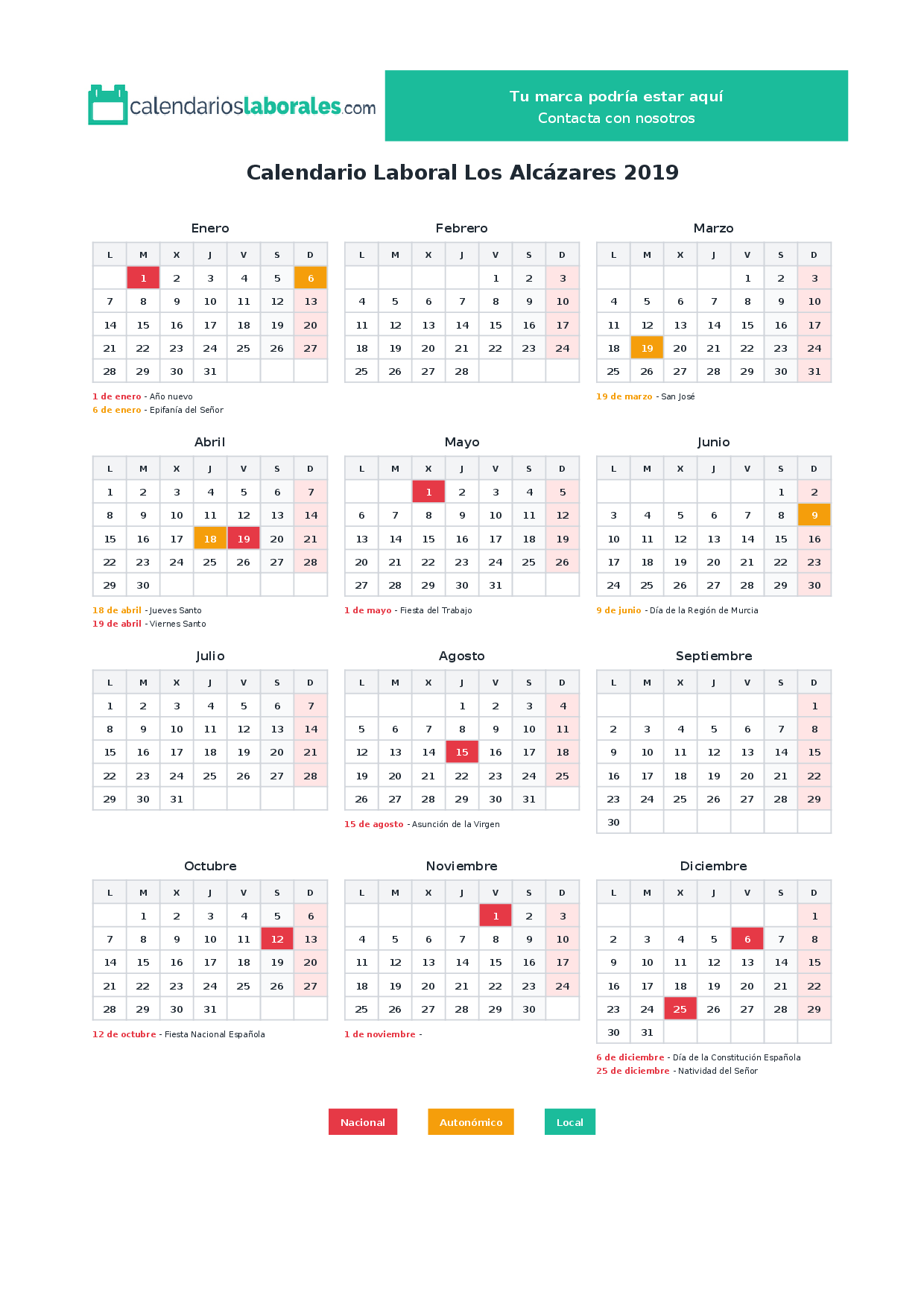 Puedes consultar también el calendario laboral de Murcia o el calendario autonómico de Murcia para más información.