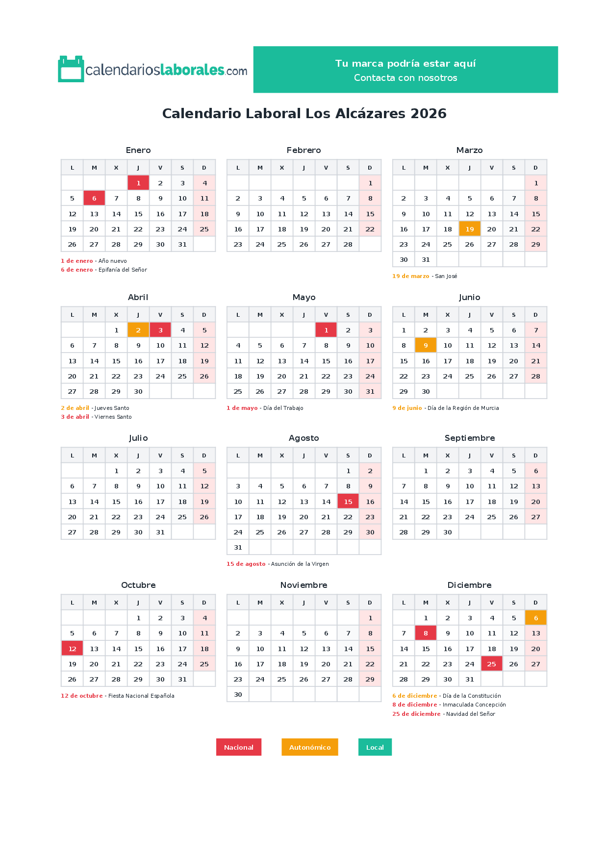 Calendario laboral Los Alcázares 2026