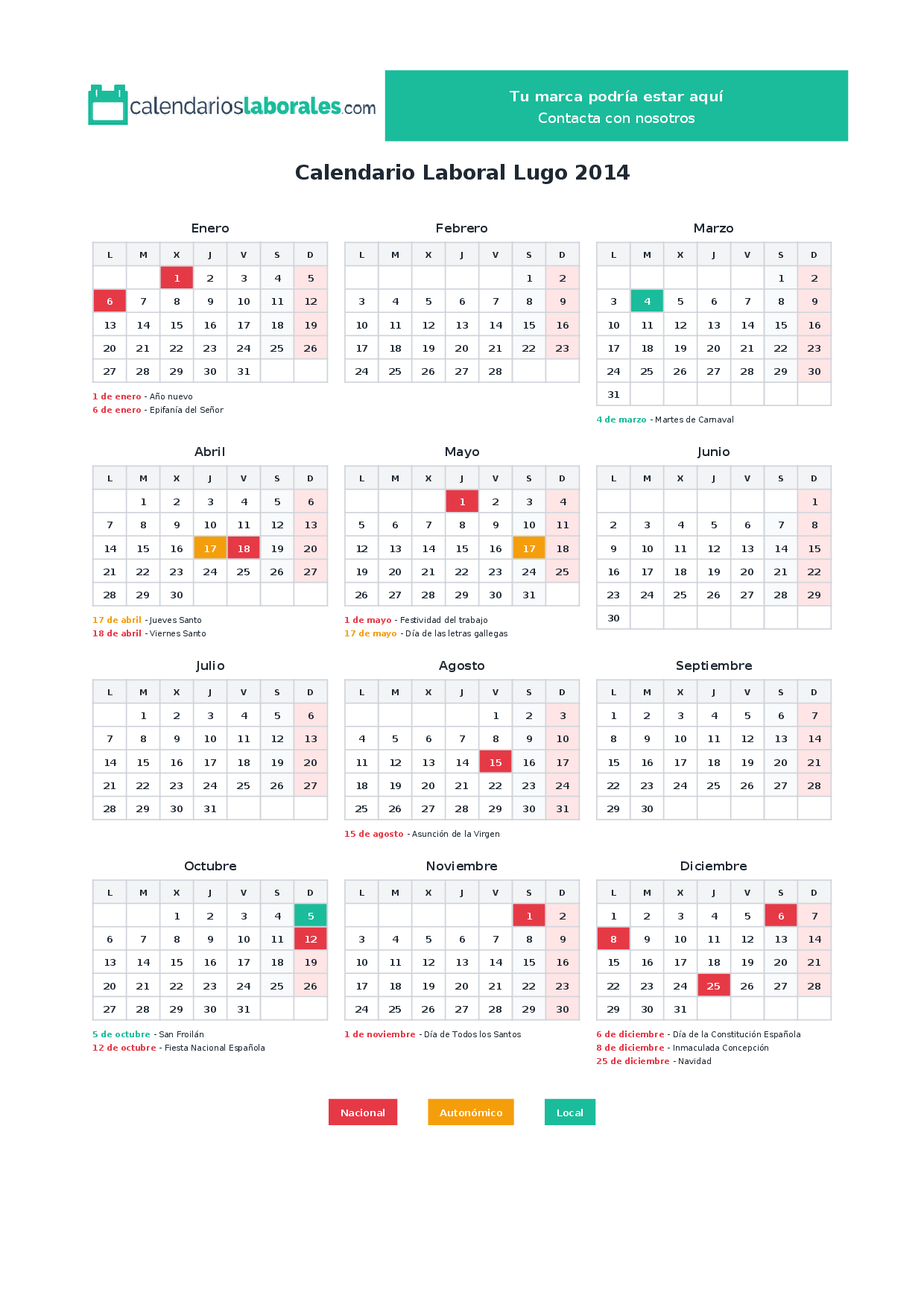 Calendario laboral Lugo 2014