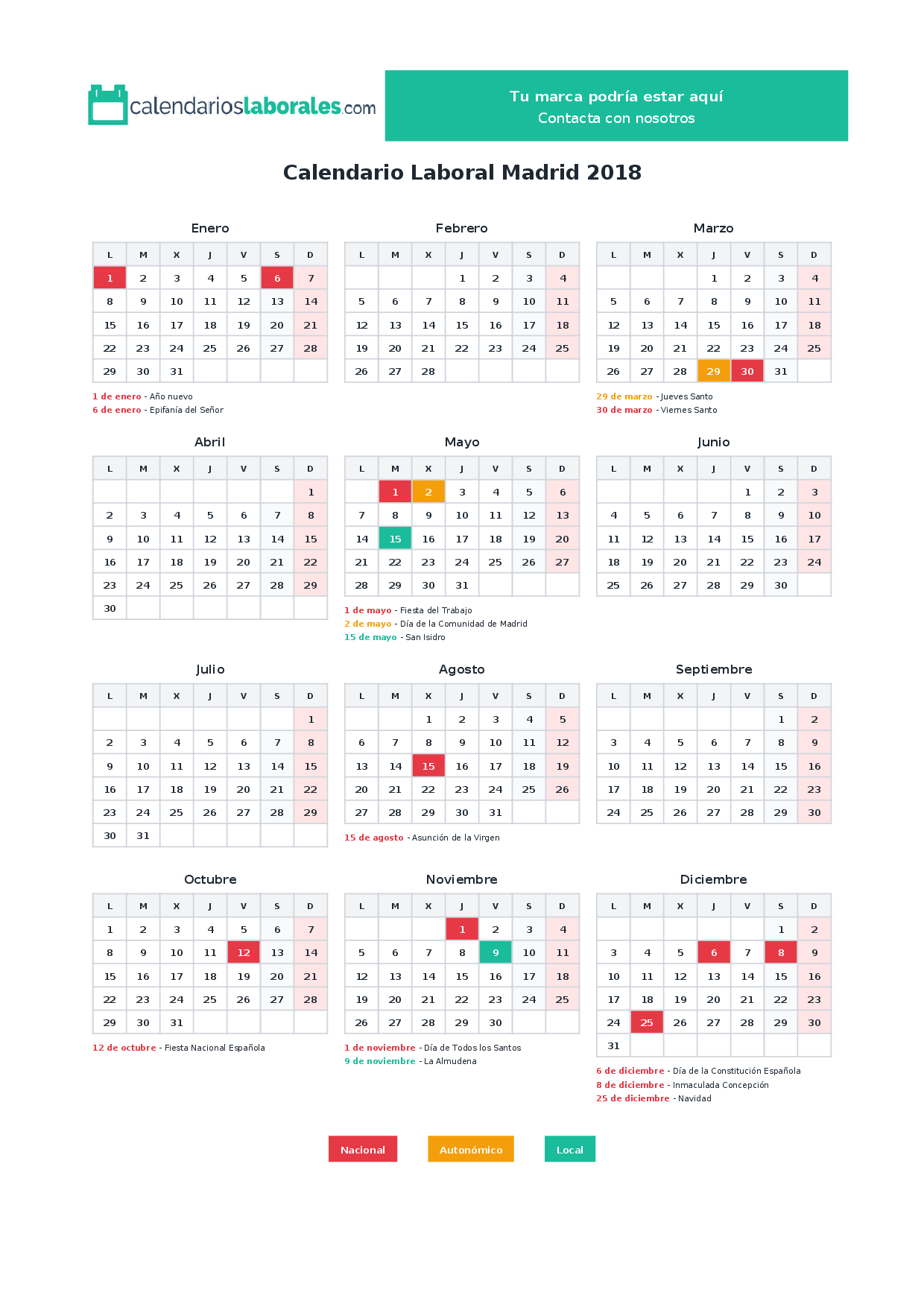 Calendario laboral Madrid 2018