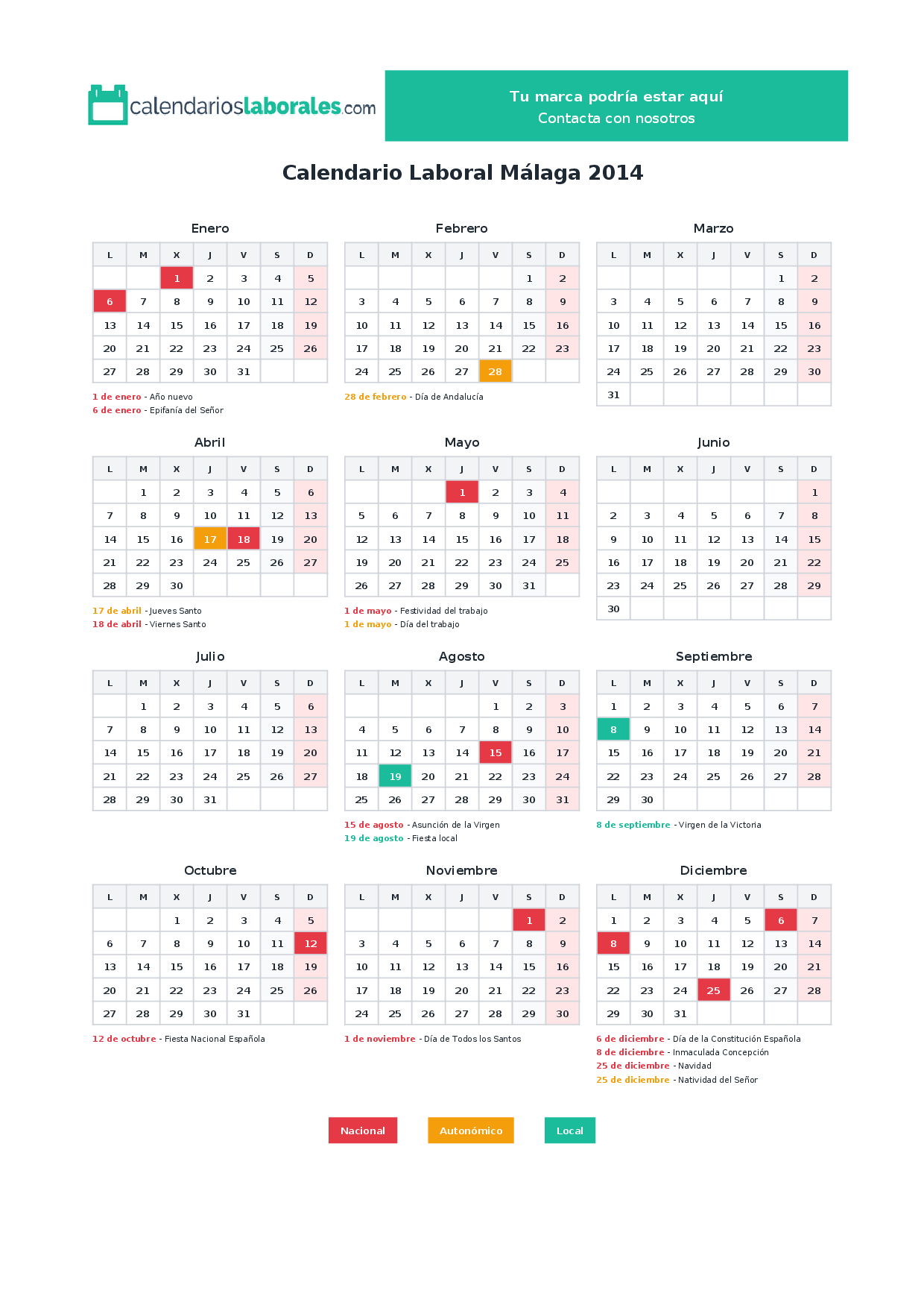 Calendario laboral Málaga 2014