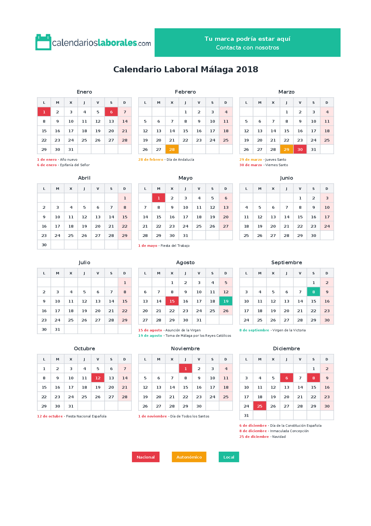 Calendario laboral Málaga 2018