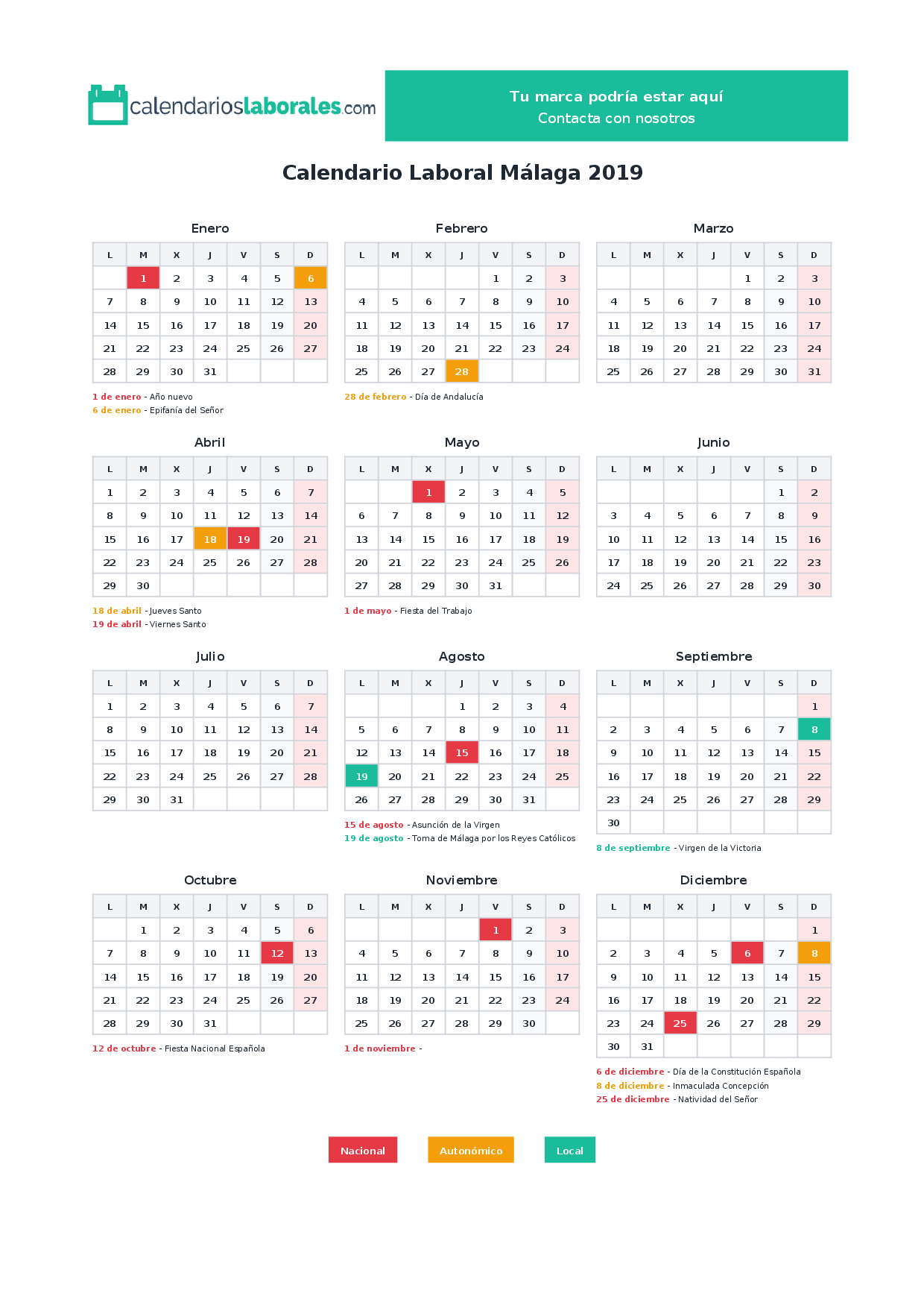 Calendario laboral Málaga 2019