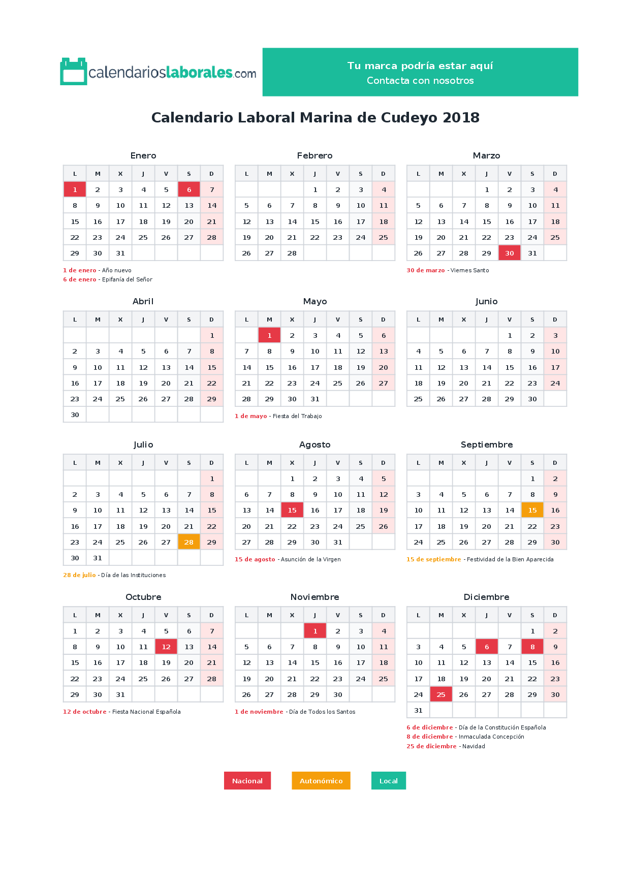 Calendario laboral Marina de Cudeyo 2018