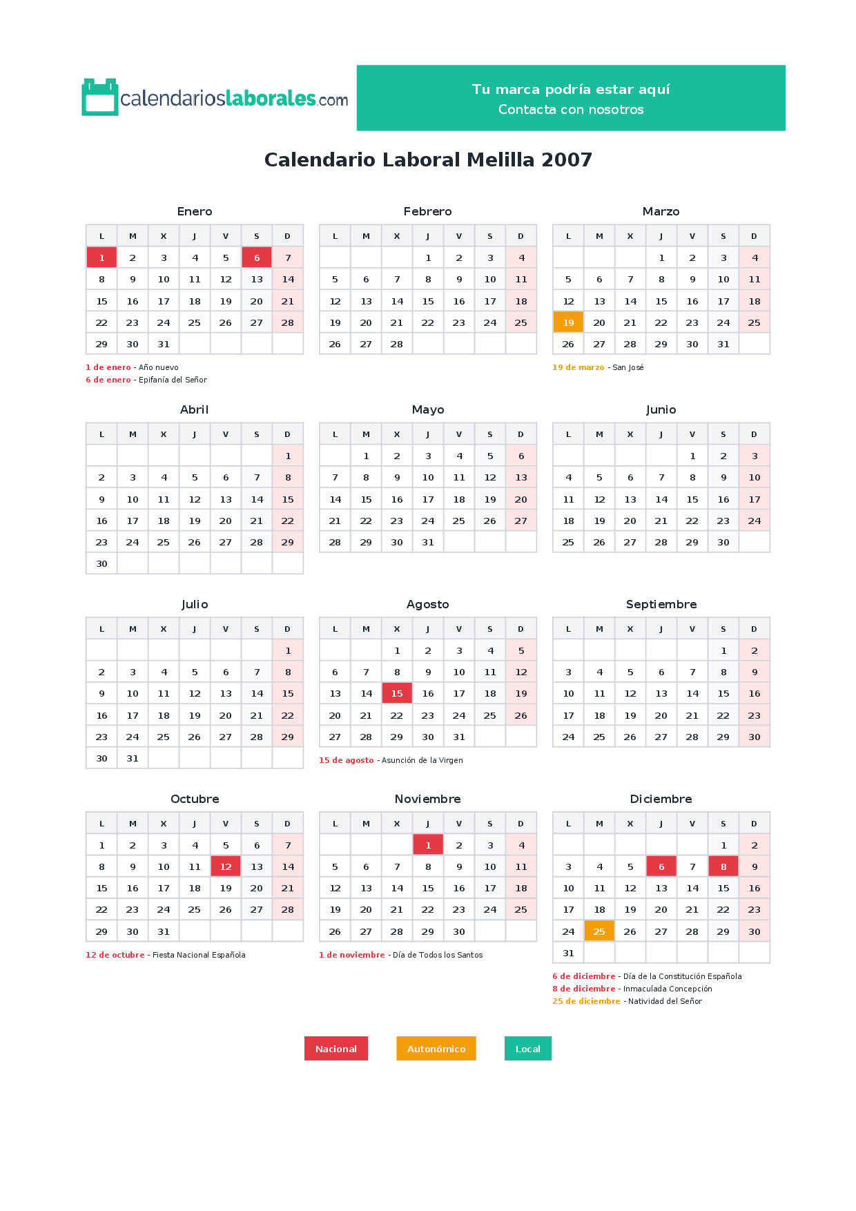 Calendario laboral Melilla 2007