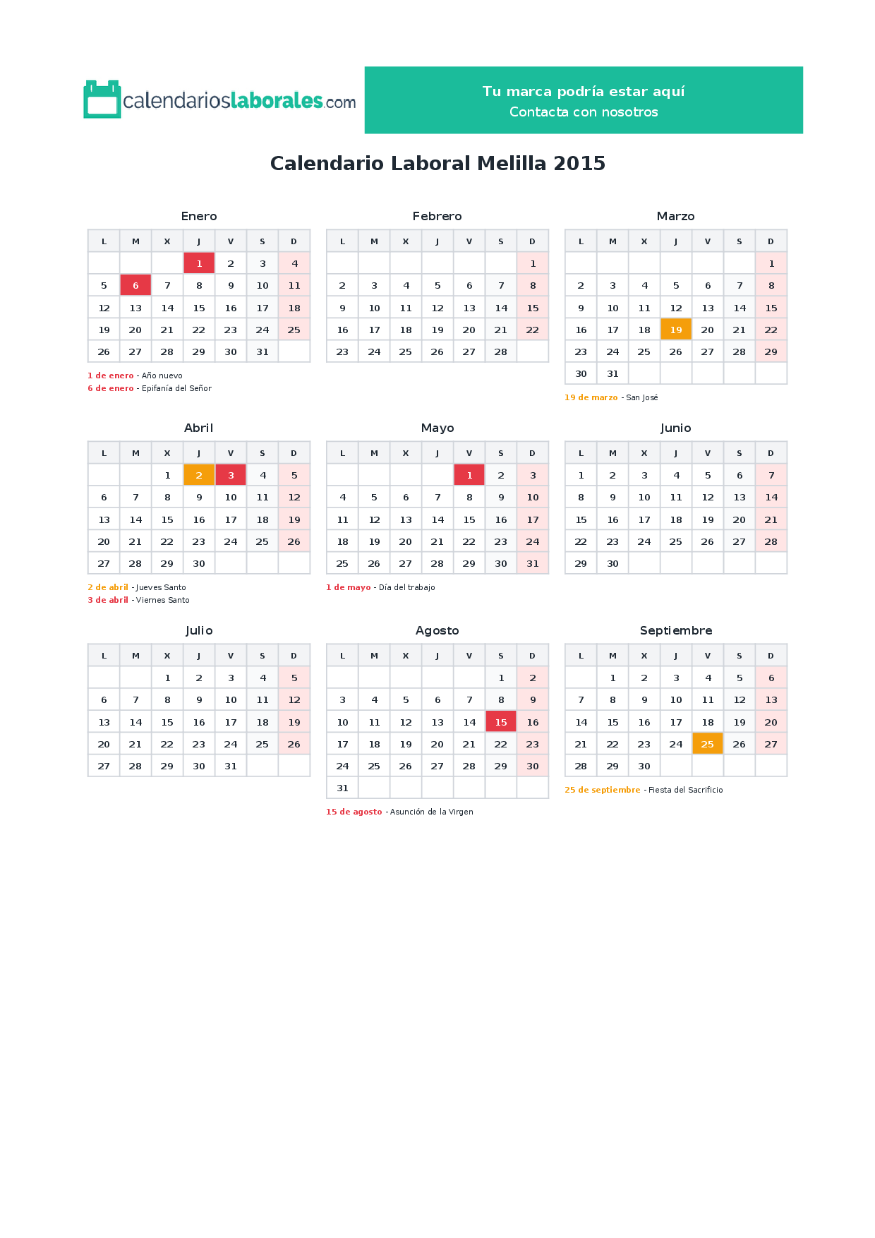 Calendario laboral Melilla 2015