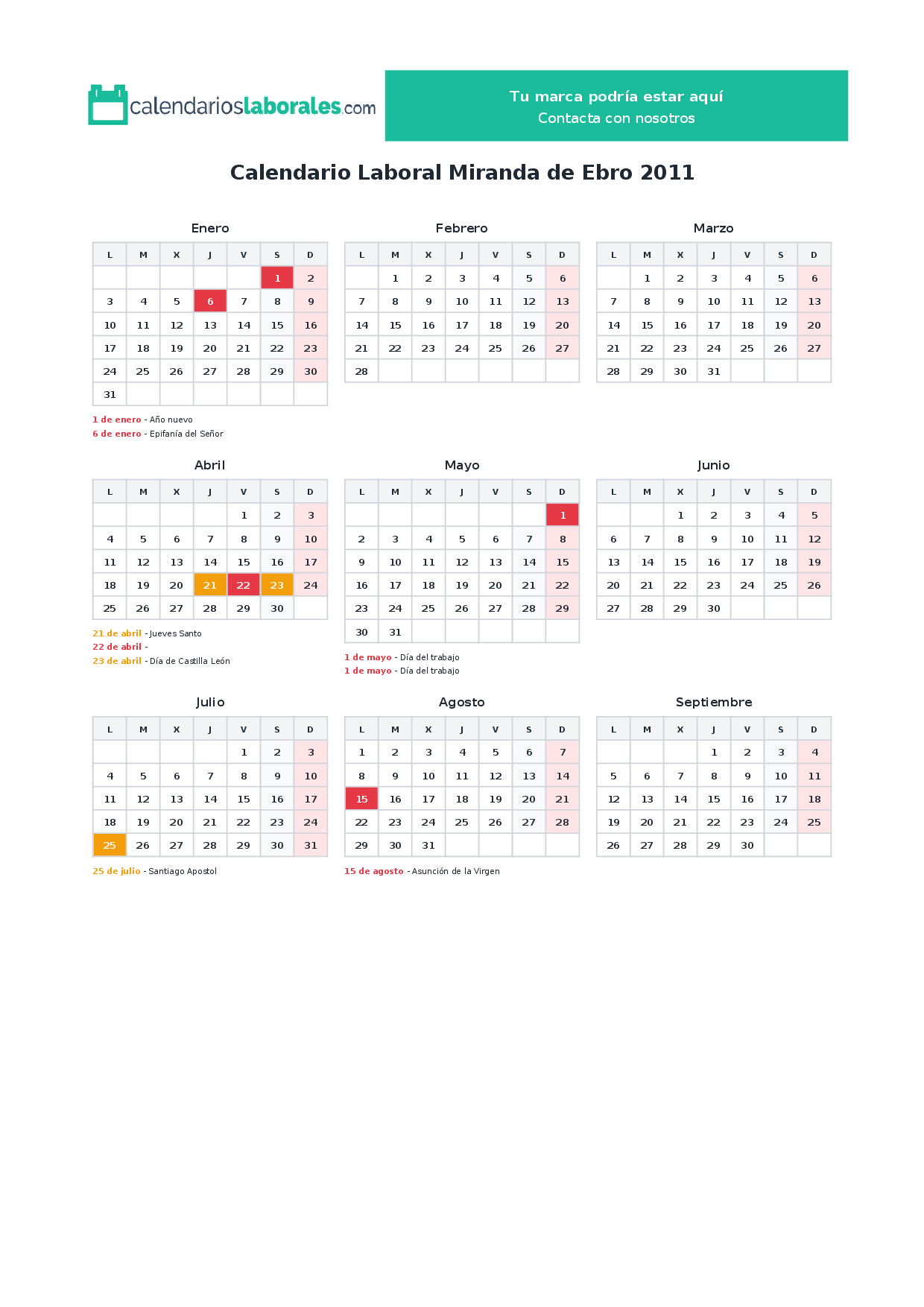 Calendario laboral Miranda de Ebro 2011