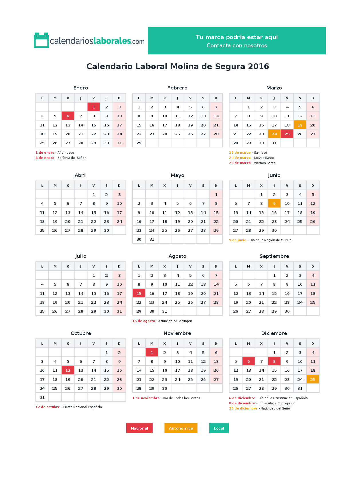 Calendario laboral Molina de Segura 2016