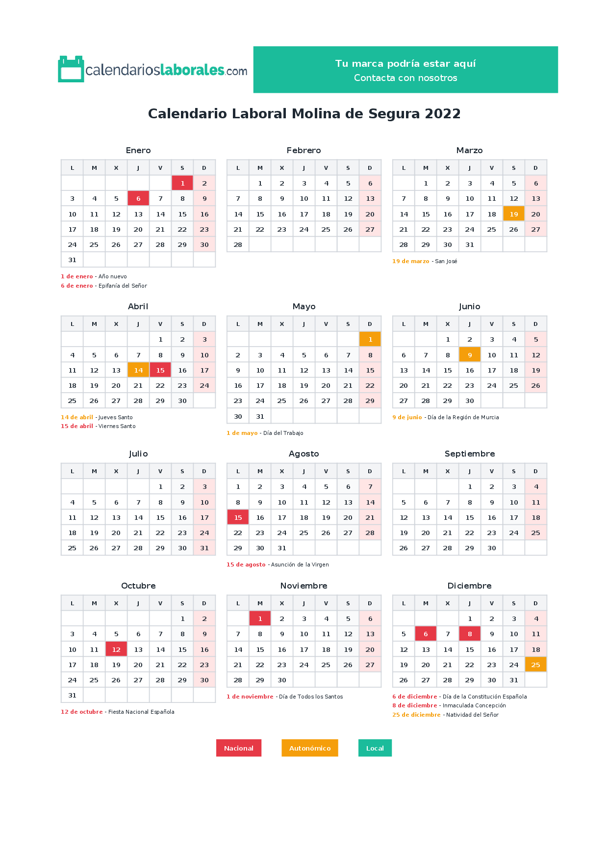 Calendario laboral Molina de Segura 2022
