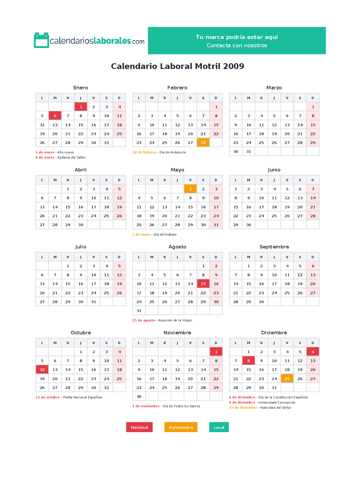 Calendario laboral Motril 2009