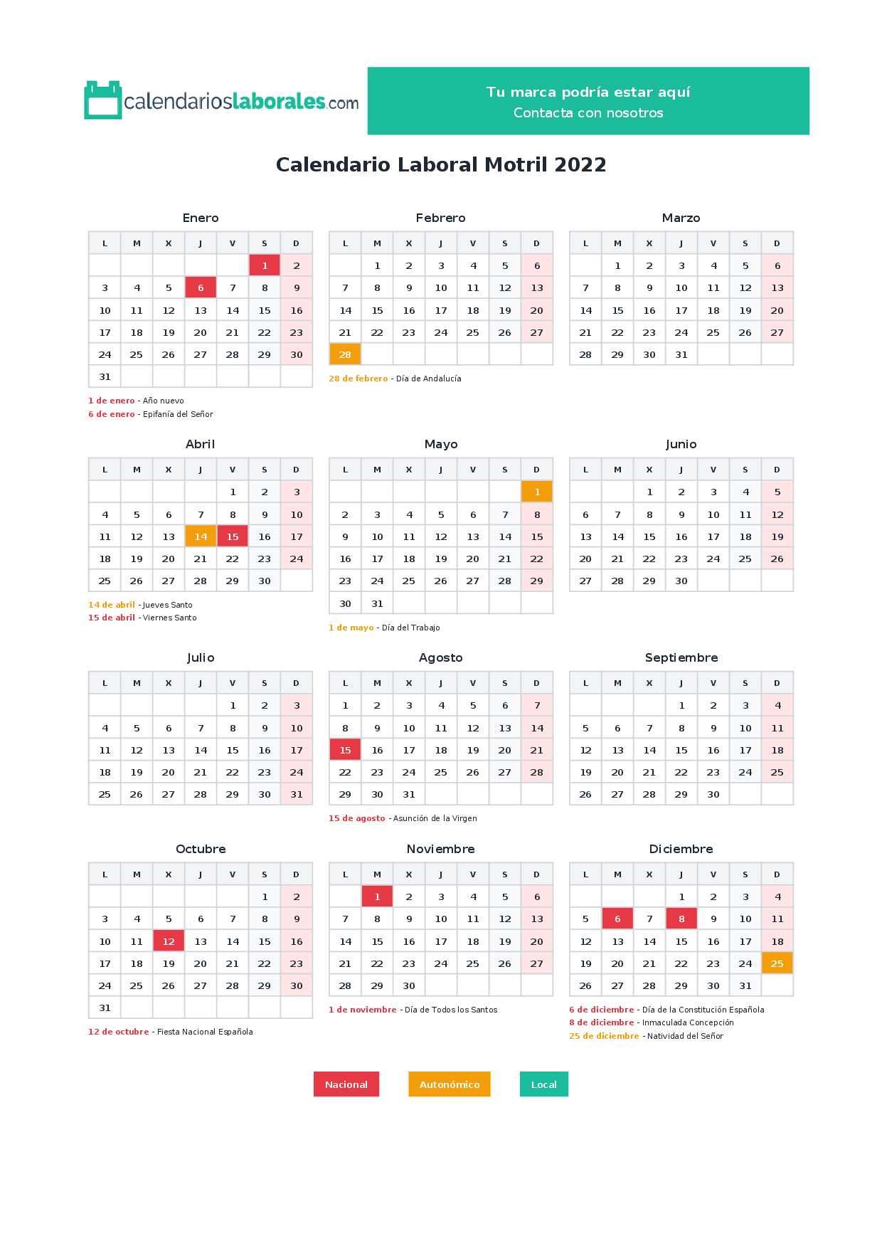 Calendario laboral Motril 2022