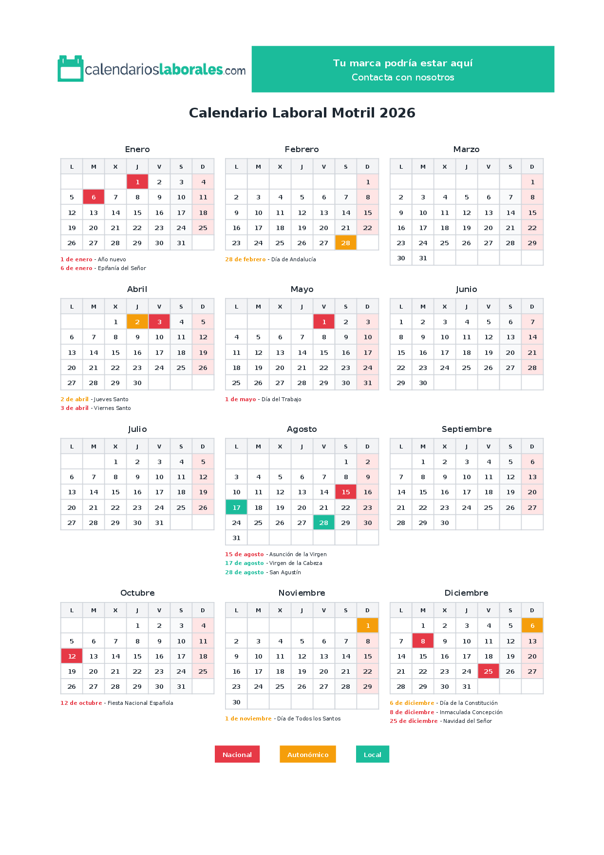 Calendario laboral Motril 2026