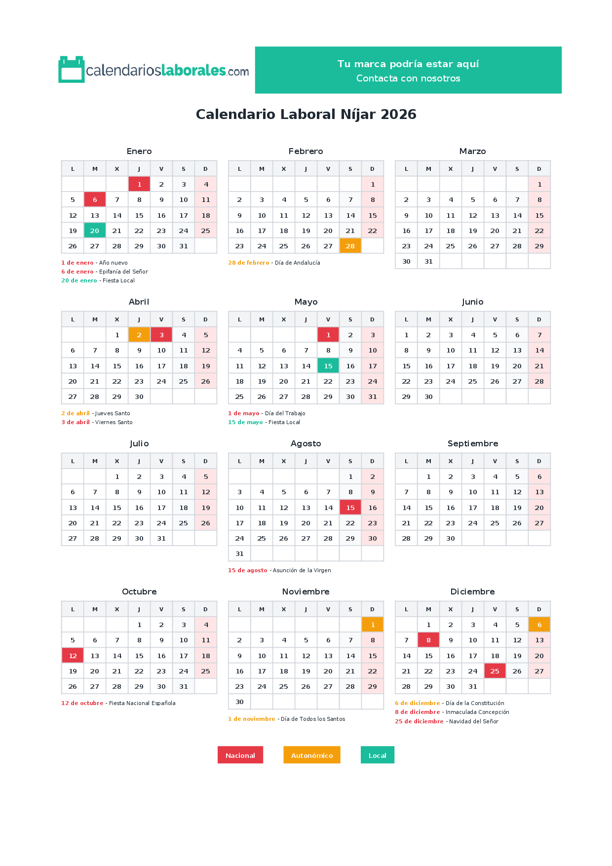 Calendario laboral Níjar 2026