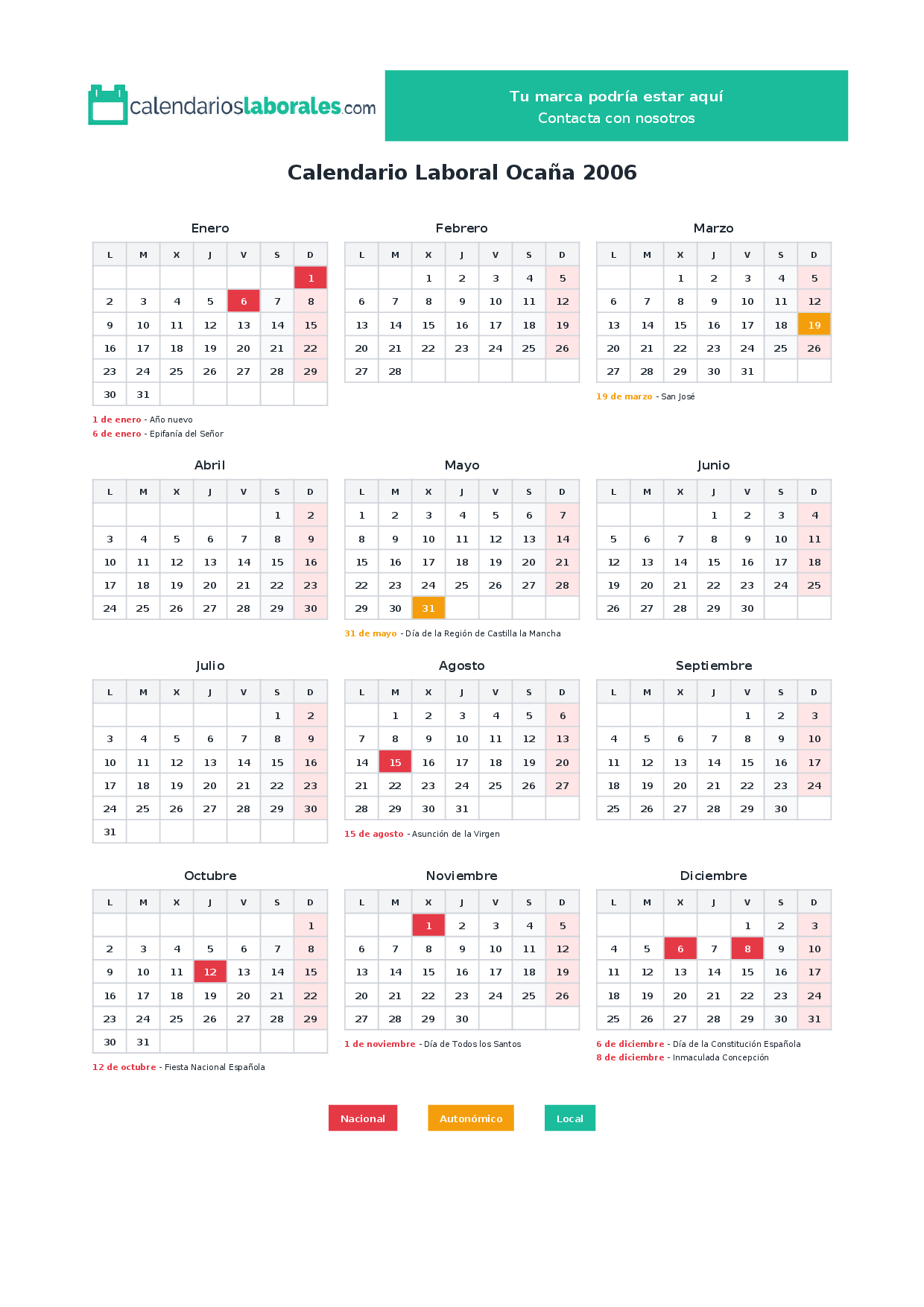 Calendario laboral Ocaña 2006