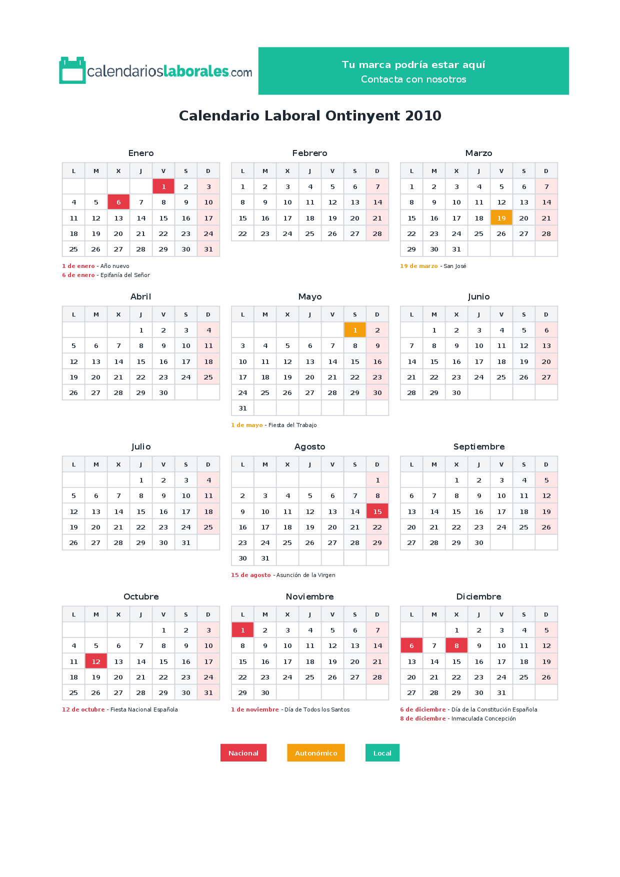 Calendario laboral Ontinyent 2010