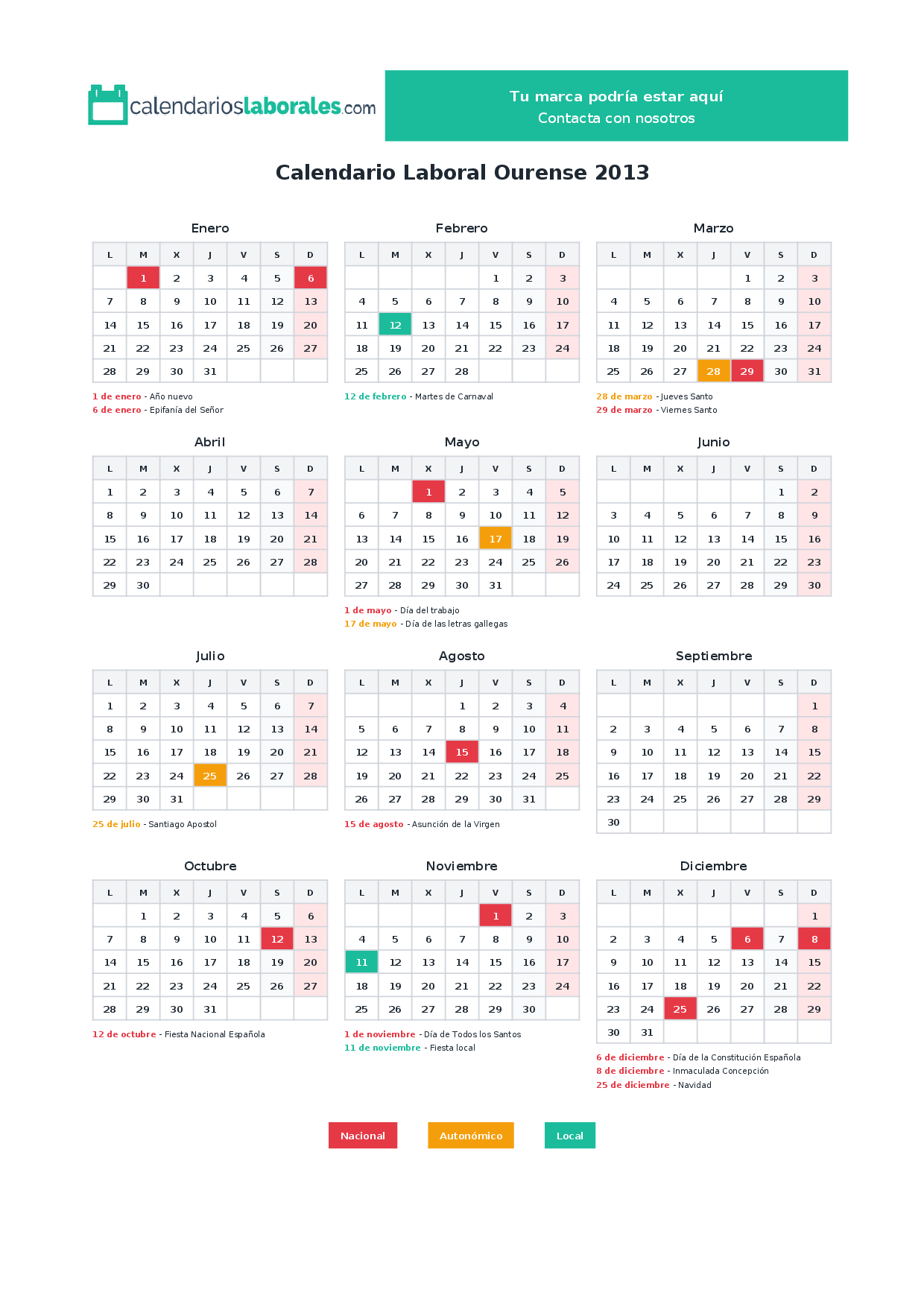 Calendario laboral Ourense 2013