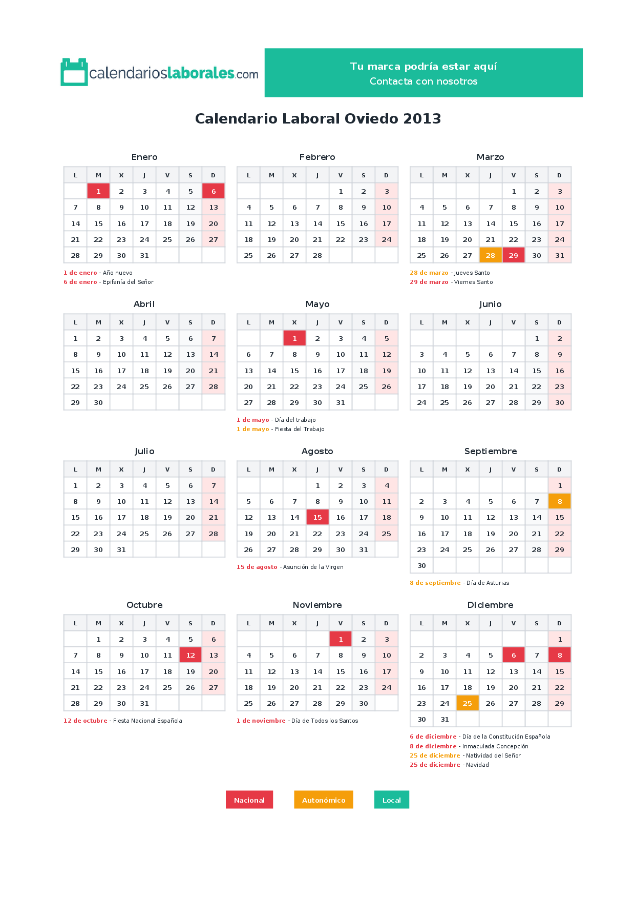 Calendario laboral Oviedo 2013