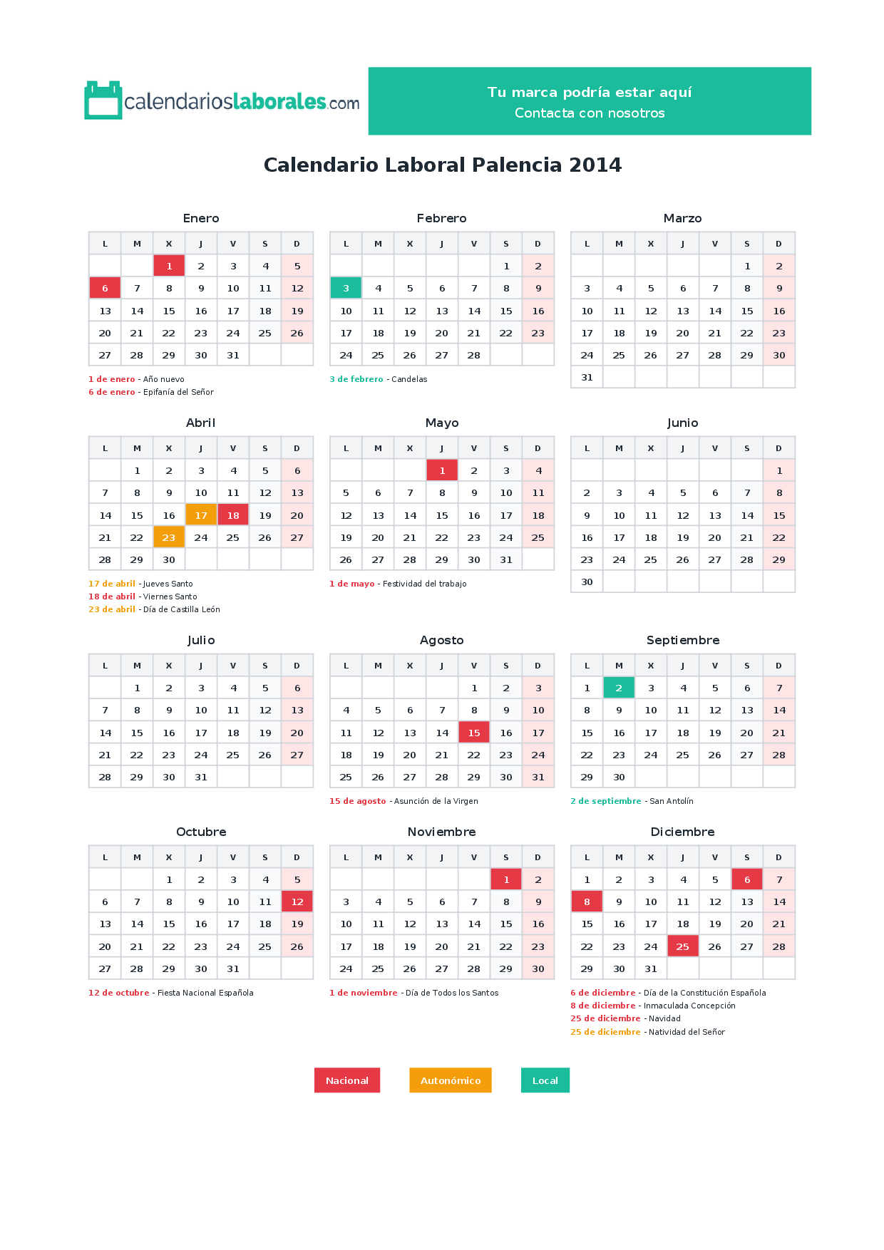 Calendario laboral Palencia 2014