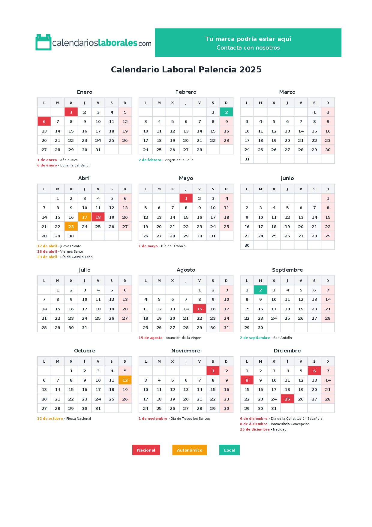 Calendario laboral Palencia 2025
