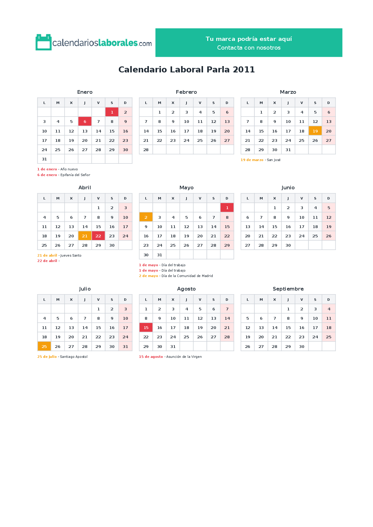 Calendario laboral Parla 2011