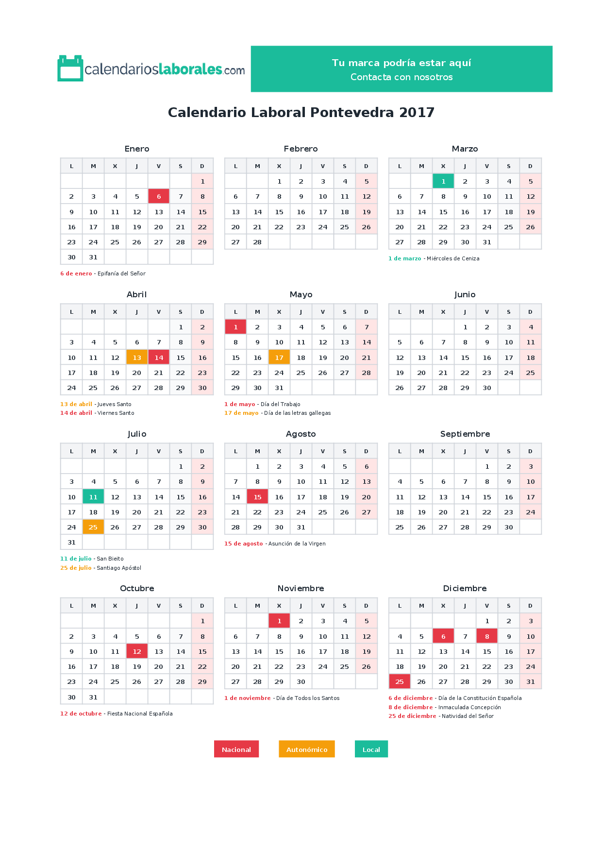 Calendario laboral Pontevedra 2017