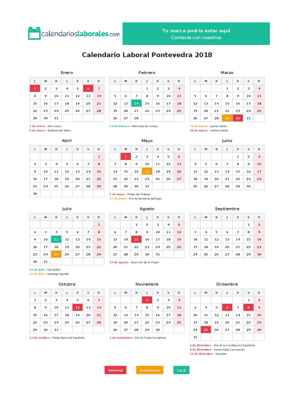 Calendario laboral Pontevedra 2018