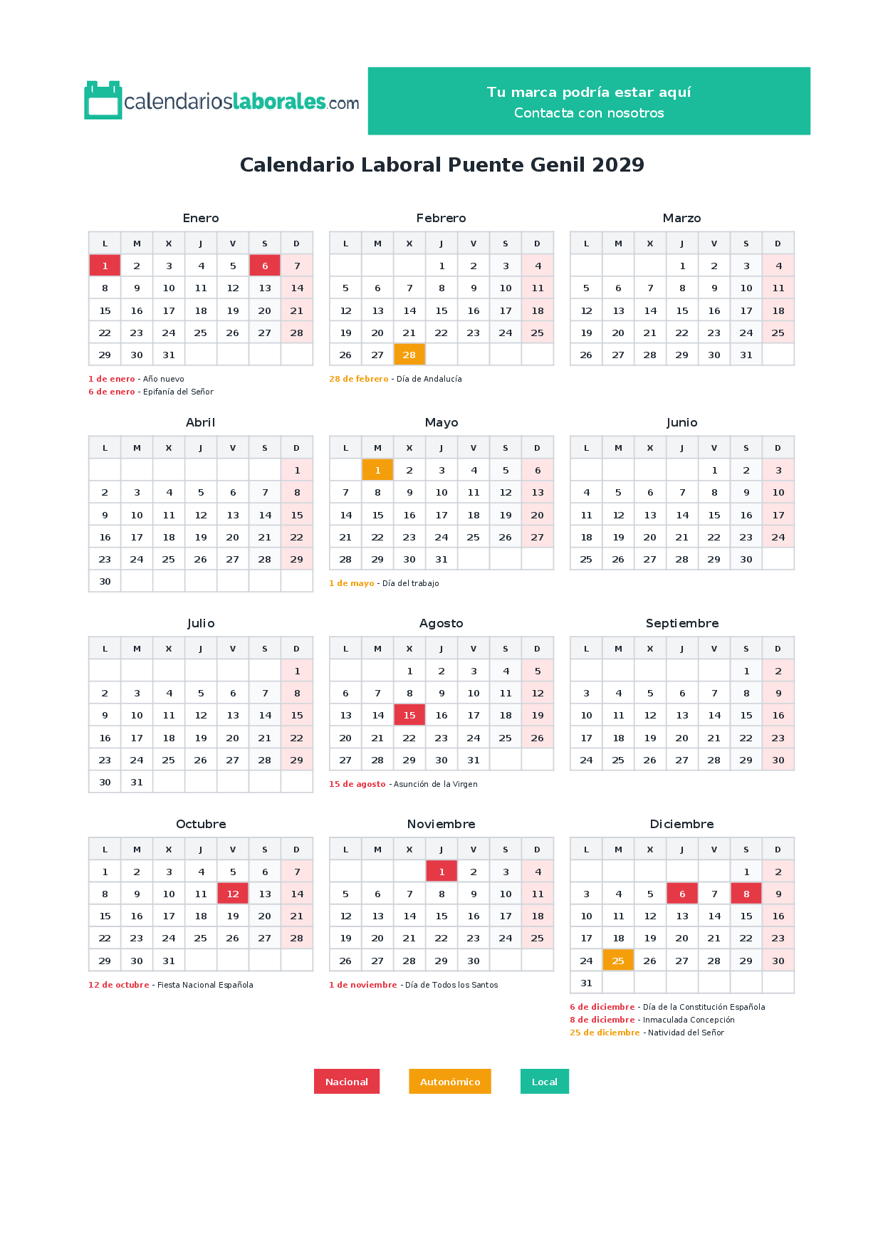 Calendario laboral Puente Genil 2029