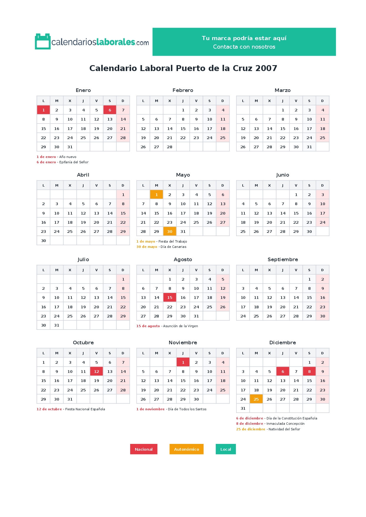 Calendario laboral Puerto de la Cruz 2007