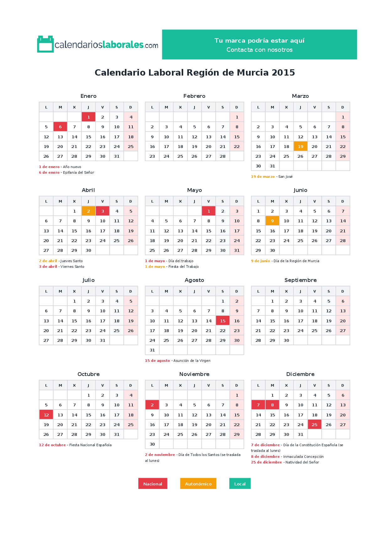 Calendario laboral Región de Murcia 2015