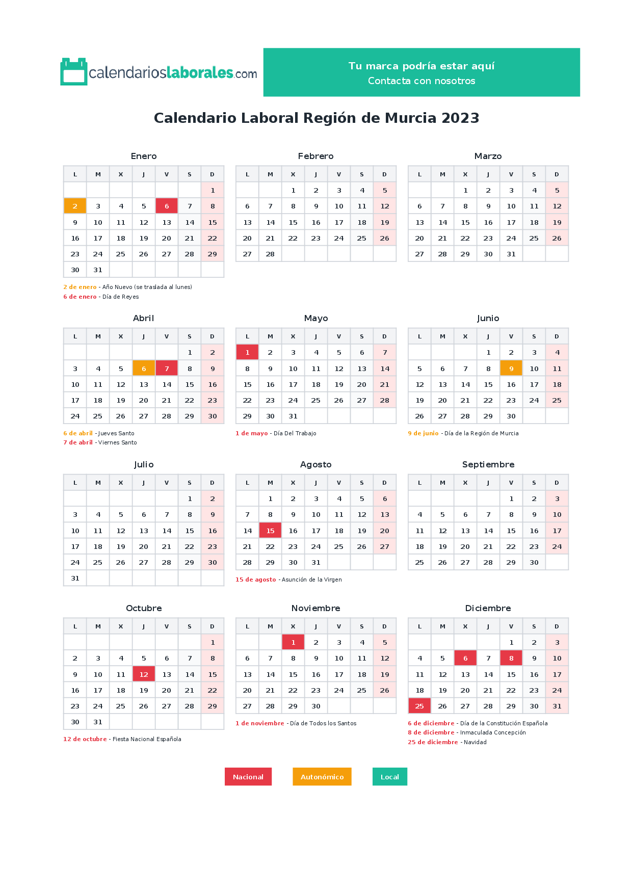Calendario laboral Región de Murcia 2023