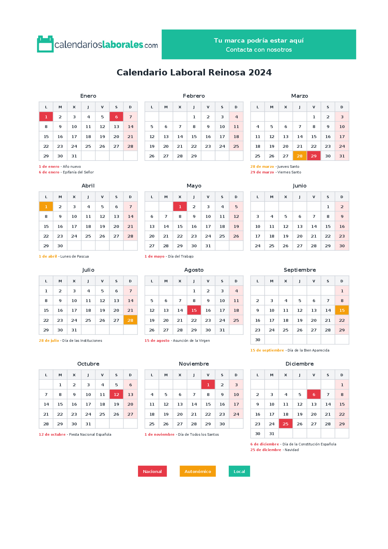 Calendario laboral Reinosa 2024
