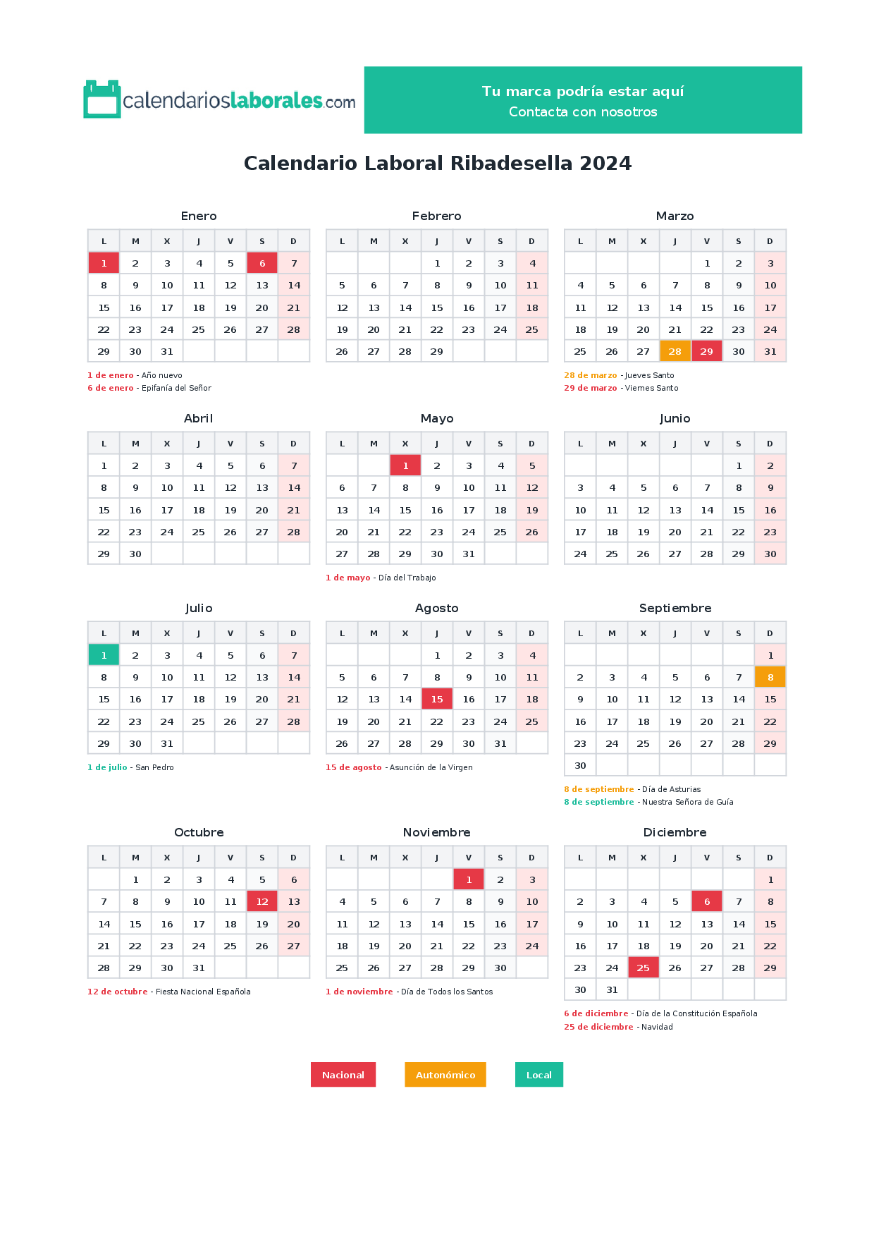 Calendario laboral Ribadesella 2024
