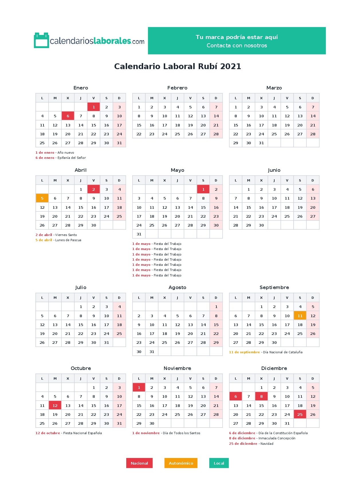 Calendario laboral Rubí 2021