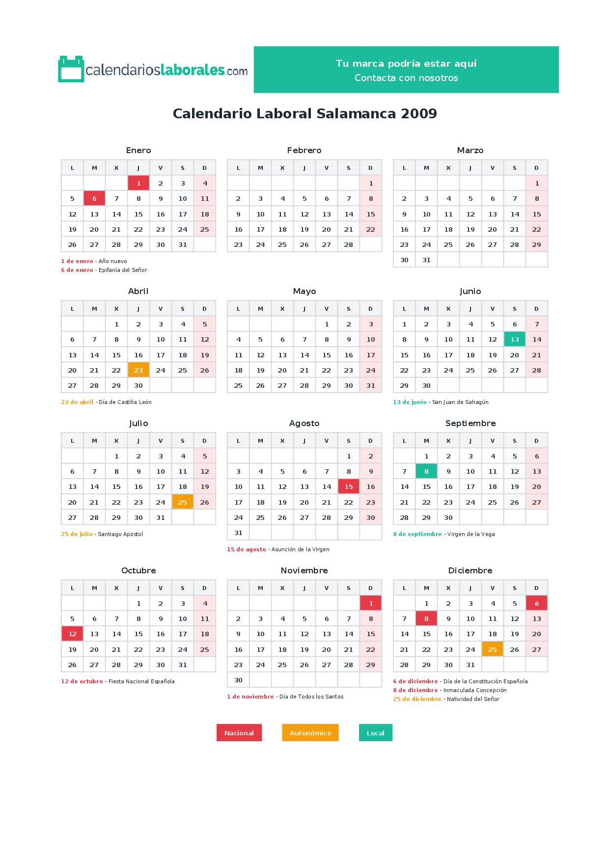 Calendario laboral Salamanca 2009